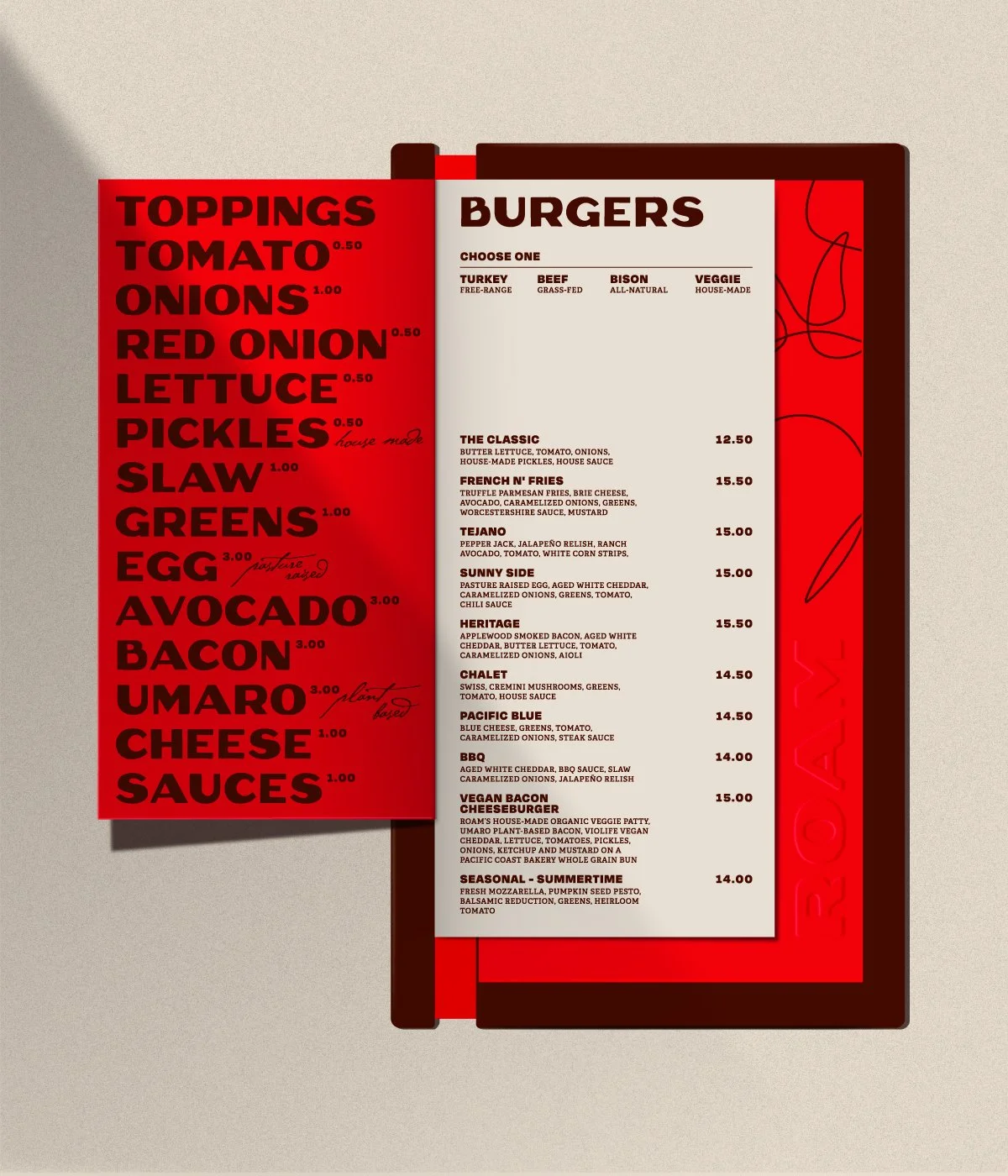 Roam Burgers is a restaurant that focuses on creating gourmet hamburgers. As their name implies, the brand is committed to using meat that is raised in ethical, humane, free-range environments.